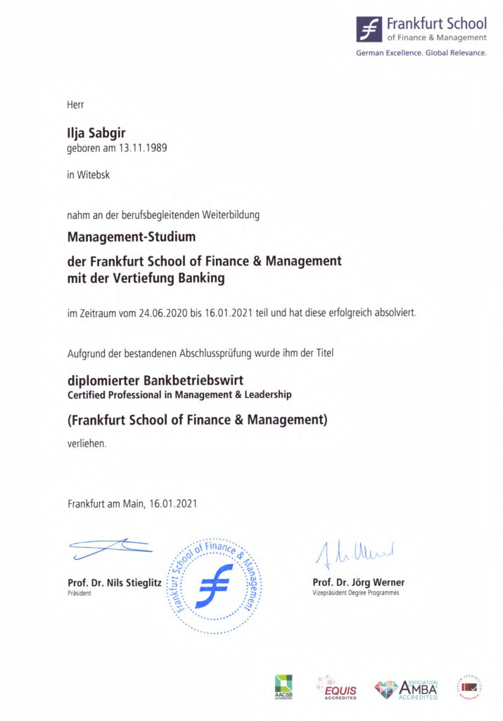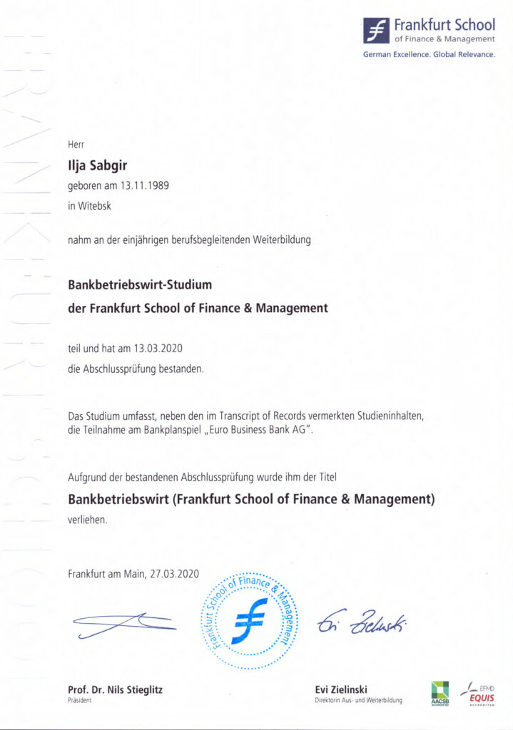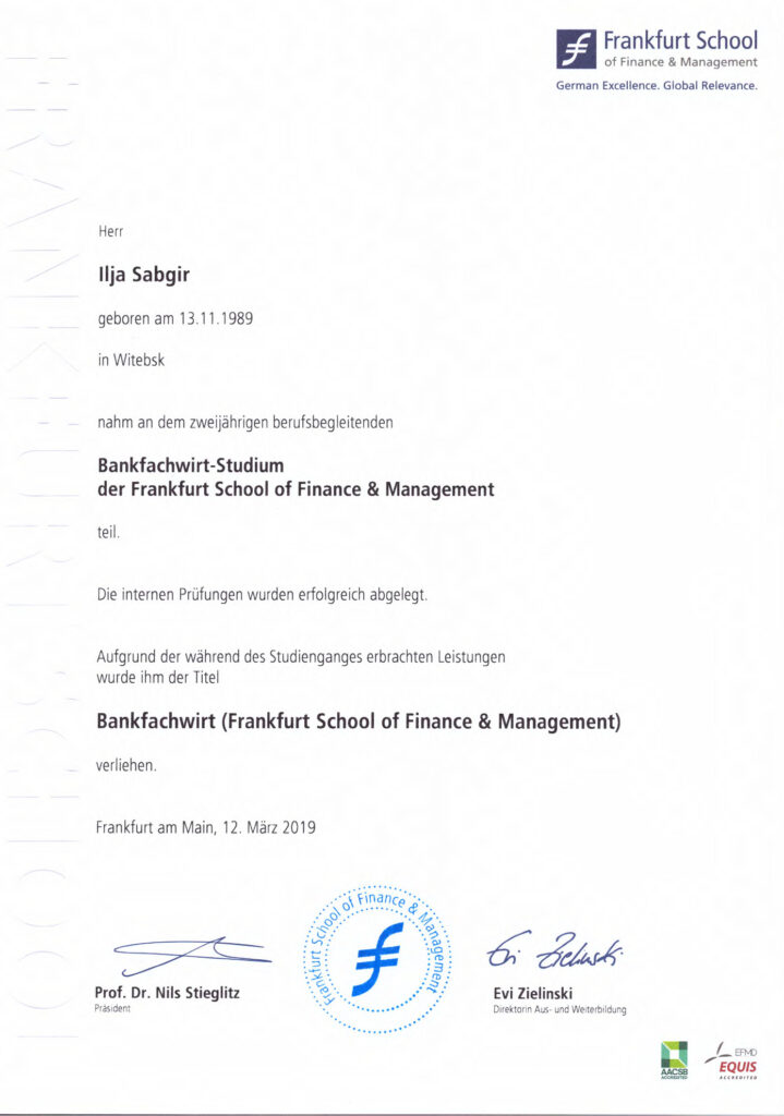 (Frankfurt School of Finance & Management) - Bankbetriebswirt