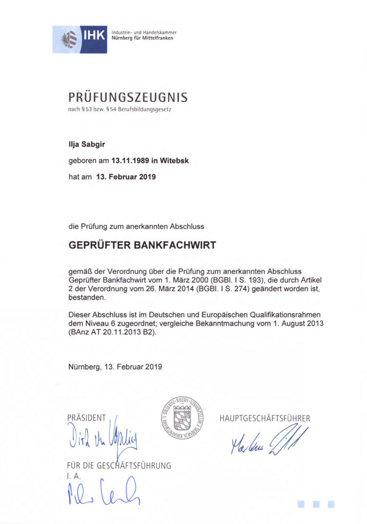 - Diplomierter Bankbetriebswirt