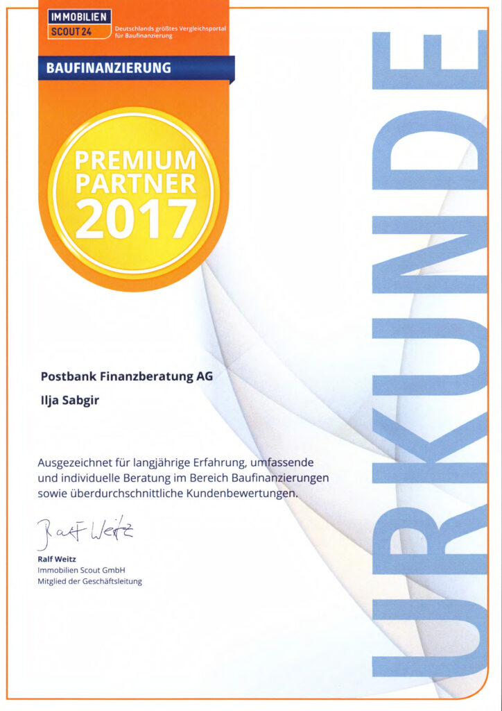 Zur Ermittlung und Zusammenstellung Ihrer optimalen Finanzierungslösung, setze ich meine langjährige Erfahrung und mein umfangreiches Wissen rund um das Thema Baufinanzierung ein. Ich unterstütze Sie von A bis Z bei der Abwicklung des Finanzierungsprozesses. Denn mir ist es wichtig, dass ich auch Sie zu einem meiner begeisterten Kunden zählen darf. Dafür sprechen auch die Stimmen meiner bisherigen Kunden.